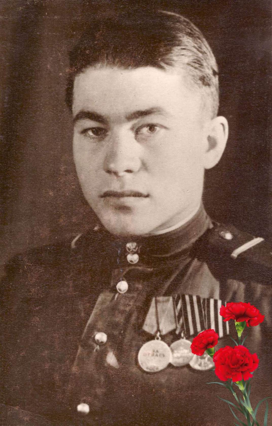 Мой прадед был призван в апреле 1943 года в 492 стрелковый полк 2-ого Белорусского фронта. В конце 1943 года полк вступил в бой с фашистами между Витебском и Оршей. Обороняли важную шоссейную магистраль, по которой к городам прорывались враги. Во время боя мой прадедушка обеспечивал телефонную связь между подразделениями. В начале 1944 года прадеду приказали доставить важное донесение командиру полка. При выполнении задания он был ранен в ногу фашистским снайпером, потерял много крови, но задание выполнил. После ранения 5 месяцев лечился в госпитале и был направлен в полк охраны штаба 2-ого Белорусского фронта. Закончил войну в Польше в городе Штеттине.
